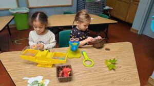 Our teachers provide a carefully planned learning environment where children are able to explore academics naturally through free choice centers, games, and invitations to play.